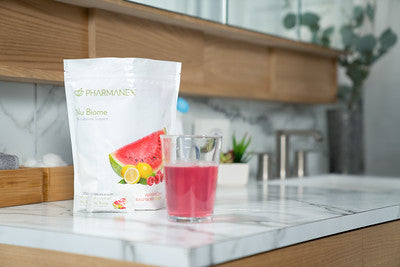 Gut check: intestinal unease getting you down? From supporting healthy digestion to helping maintain your intestinal health, the microorganisms in your GI tract impact your wellness far beyond your stomach. Pharmanex Nu Biome supports this vital intestinal balance with a powerful dual-action solution of pre and postbiotics, plus a boost of caffeine. All in a delicious powder mix-in, so you can quickly and conveniently support your intestinal health and feel your best every day.